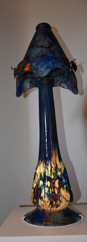 Ces collections mettent à l’honneur les productions des Manufactures verrières (Gallé, Daum, Muller, Legras, Loetz) et les créations d’artistes artisans (Broccard, Reyen, Marinot, Colotte)