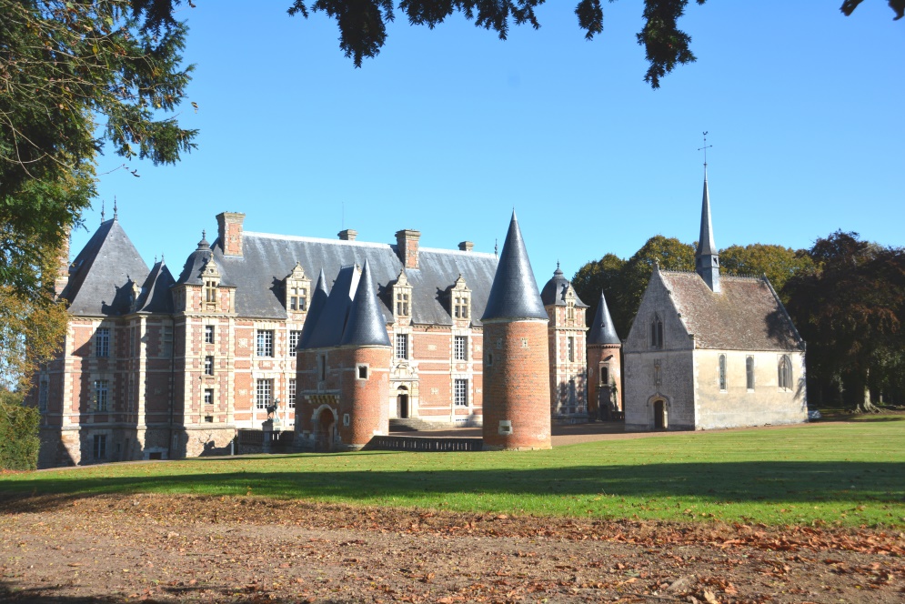Sous un beau soleil d’automne, nous sommes 46 participants organisés en covoiturage à mettre le cap sur notre premier lieu de visite : le Château Manoir de l’Ecureuil au nord-est de Rugles.