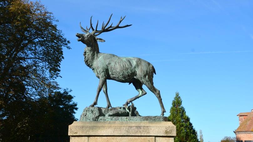 Jacques -François de Chambray, surnommé « Le grand Veneur » féru de chasse à courre et connu dans l’Europe entière totalisera 2466 cerfs à son tableau de chasse. Pour le 1000ème abattu lui fut offert ce magnifique cerf en bronze qui trône toujours devant le château.